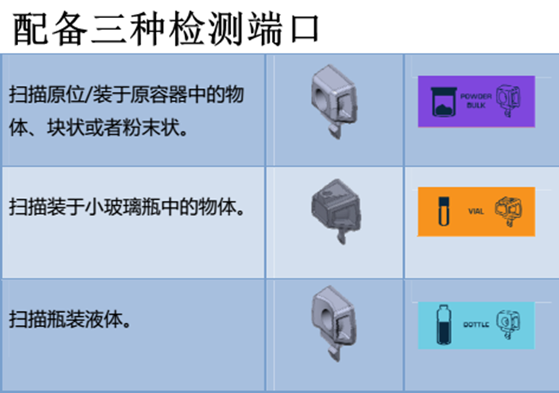 检测物质的类型:液态、块状、粉末状;