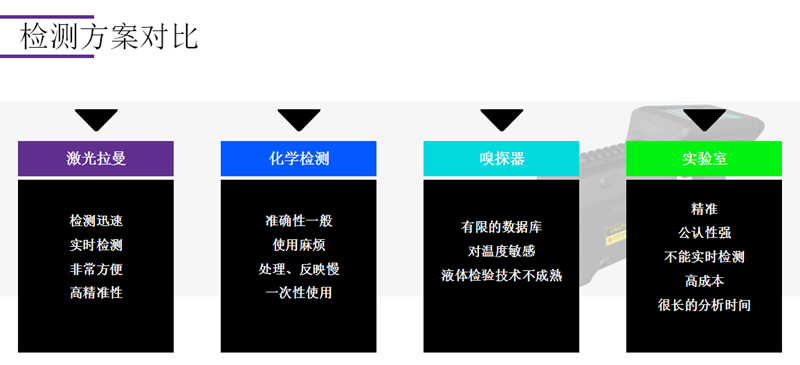 采用独特的532nm激光光源,外形科幻,坚固耐用,轻便简约,低功率高安全性,抗荧光干扰性强,检测种类多,检测速度快,不受环境影响实时检测,准确性高,操作简单,无需预热、校准,工作时间长,可视性强,危险警告,数据库可不断升级扩展,检测结果可保存日志文件,是一台全自动可移动实验室;